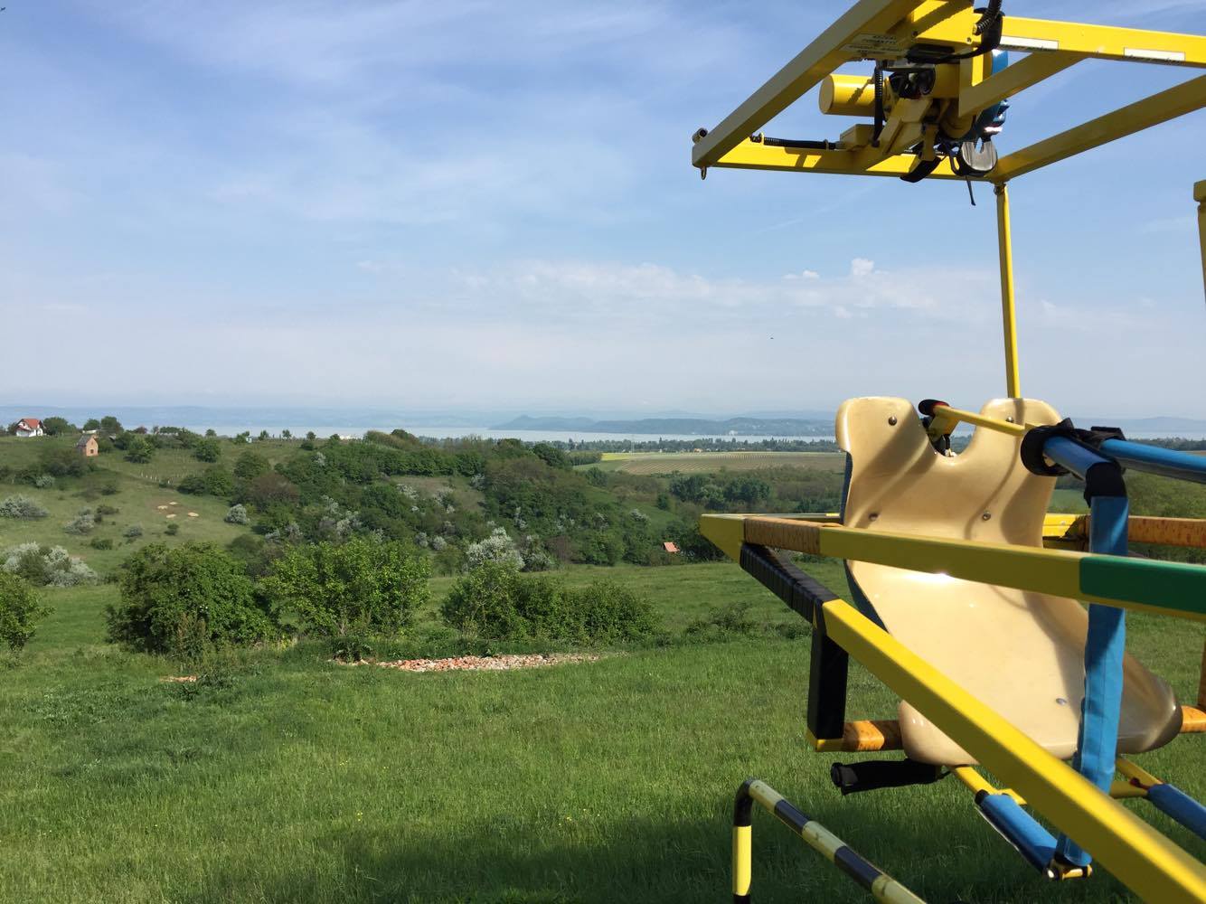 A múlt héten kellemesnél kellemesebb tájakon jártunk az ExtrémHintával és szórakoztattuk a Balaton vidéki lakókat is. Ezt a szép kis tájképet csatolnám be a képriportba, amelyen látható országunk gyönyörű tava, a Balaton és egyetlen elektromos hintája is egyben, az ExtrémHinta!