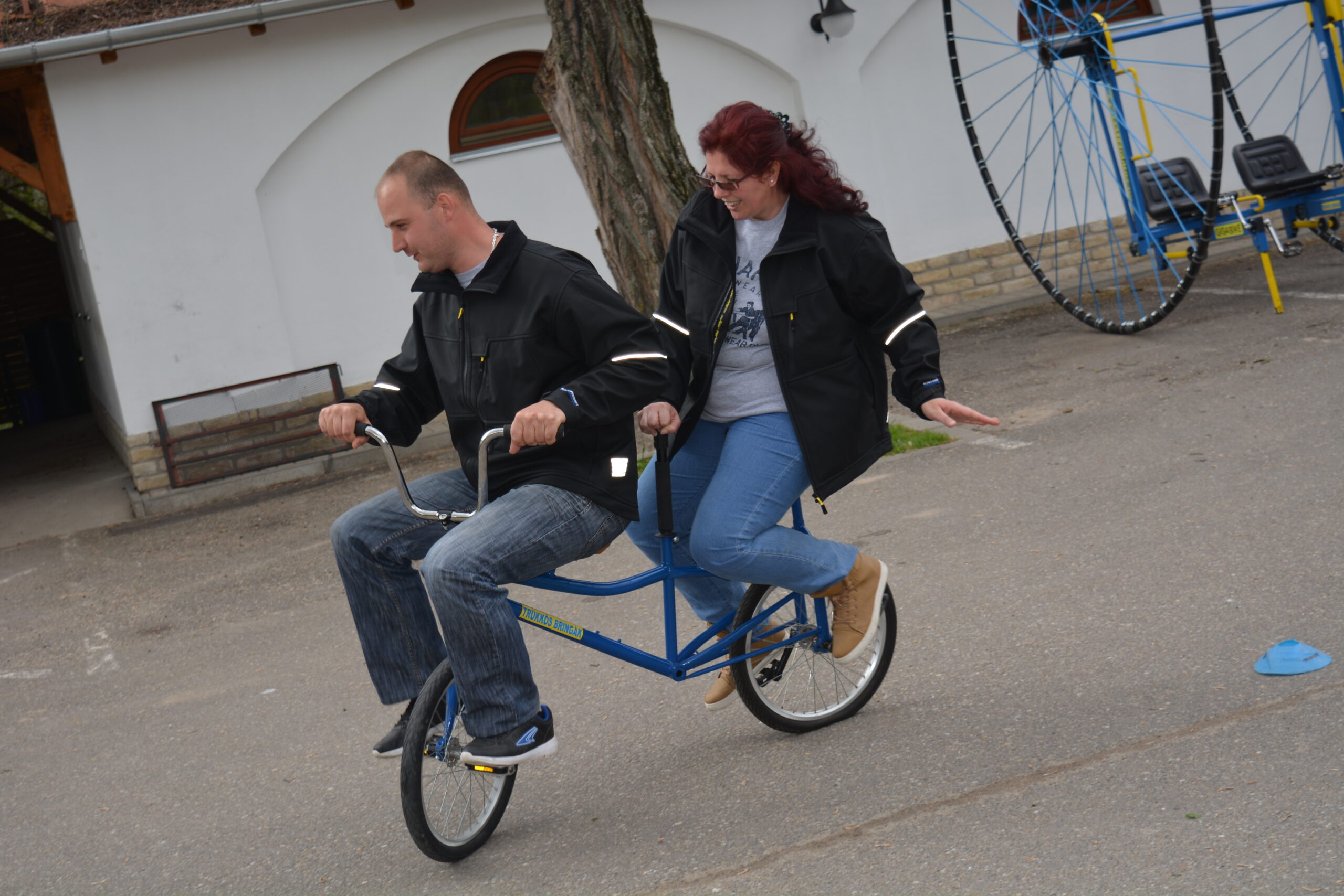 A csapatépítés résztvevői találkozhattak a legnépszerűbb játékainkkal a trükkös bringákkal, a gigabikekal, a quadokkal és fémvad-lövészettel is. A napsütés segített bennünket a kellemes pillanatokban, amikor is az ügyesség, a gyorsaság és a pontosság számított. A Zöldfülüek, a Pirosak és a Kék osztriga csapata mindent megtett, hogy az első helyen végezzen. Másodpercek és csupán pár méter döntött arról, hogy ki nyeri a csapatépítést, így nagyon szoros eredmények születtek. Végül a Pirosak kerekedtek felül a többi csapaton. A játék végén mindenki megkapta a jutalmát és az oklevelét, amit követően egy újabb trükkös bringát, a trükkös párost kellett az egész társaságnak összeszerelnie és megvalósítania.
