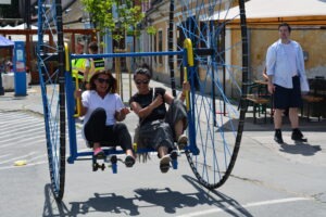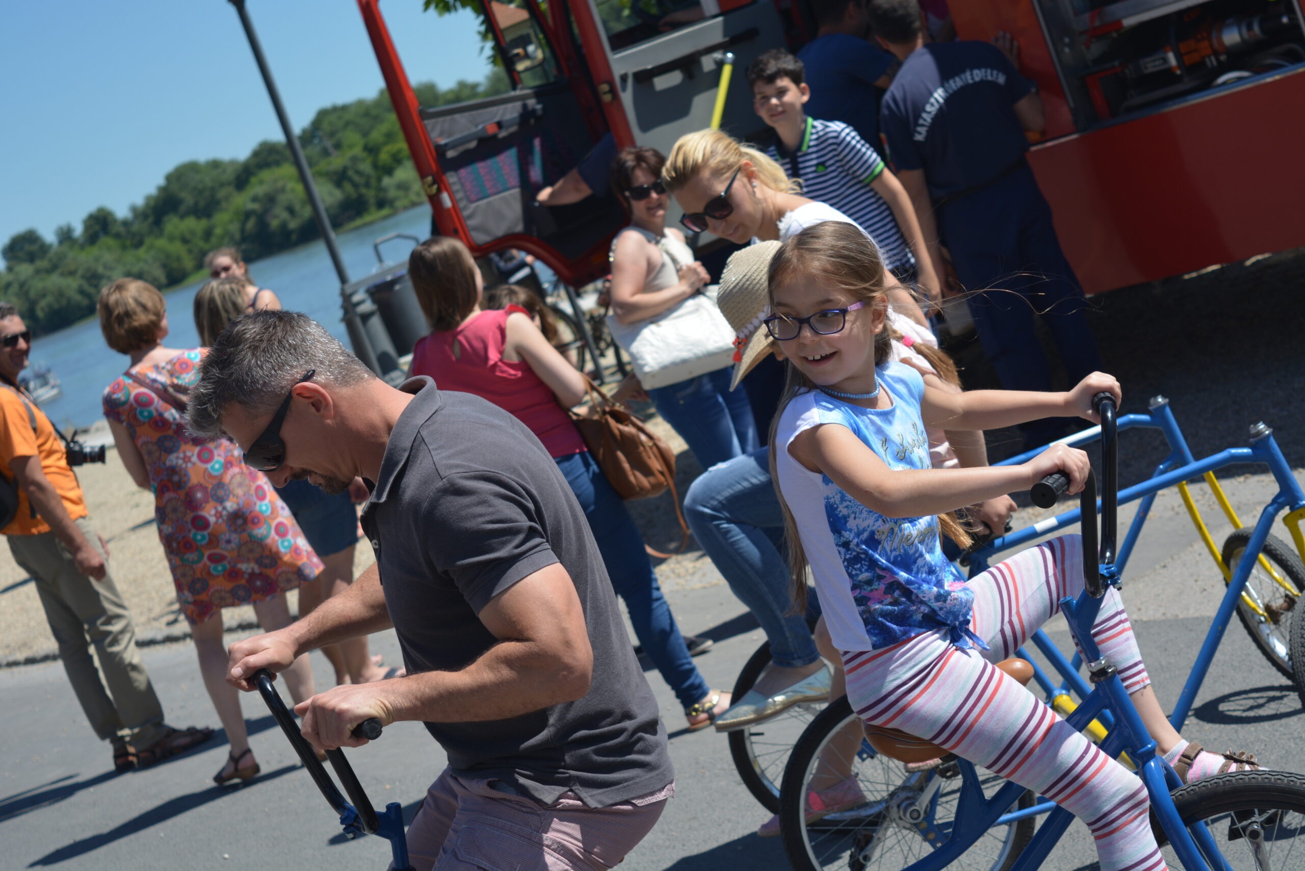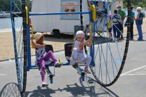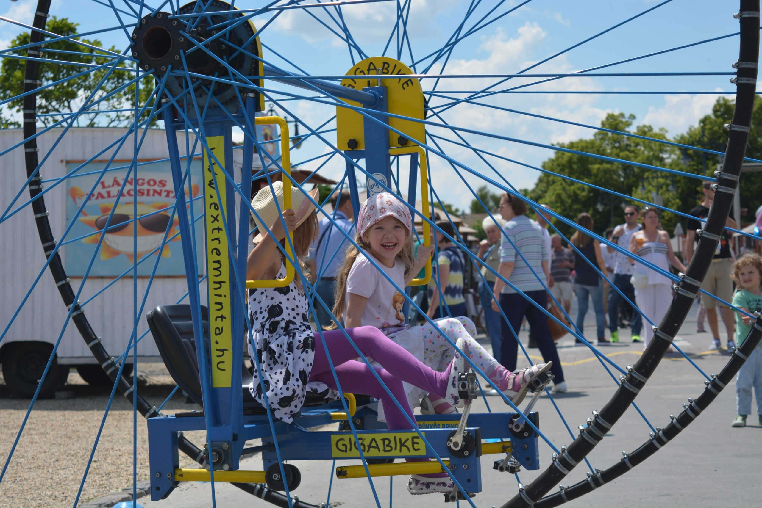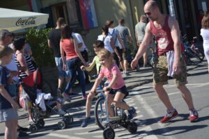 A Szentendrei Kulturális Központ az idén kétnapos Gyermeknapot szervezett Lurkócia néven a város három helyszínén: Duna- korzó, Lázár cár tér és a Fő tér. Rengeteg program és Lurkócia -akárcsak egy igazi állam- minisztériumaival várta a kisebbeket és nagyobbakat, az egész családot. Mi is részesei lehettünk ennek a csodás hétvégének, ahol gyerekek ezreinek arcára csalhattunk mosolyt. Trükkös bringákkal és a legnagyobb biciklivel, a GIGABIKE-kal próbálhatták ki ügyességüket a kis lurkók és szüleik. Itt is rá kellett ébrednünk és bebizonyították a bringák, hogy nem csak gyerekeknek terveztük azokat. Apukák, anyukák éppen olyan lendülettel és kíváncsisággal próbálták ki a két-, három-, négykerekű járgányokat, mint kisgyerekeik.